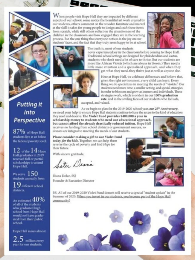 Building Murals, Canvas Paintings, Billboards, Annual Reports and Appeals, Press Kits, Program Booklets, Direct Mail, Print & Digital Advertisements, Event Materials, Indoor and Outdoor Banners, Logos, Brand Kits, Brochures, Newsletters, Flyers, Transit Advertising, Photography, Videography, Voiceovers and Commercials.